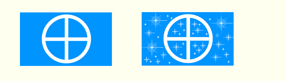 The Earth government uses the astronomical Earth symbol (quartered circle) in white on blue as the planetary flag. The flag for the Terran Union is an Earth symbol over a field of stars, white on blue.